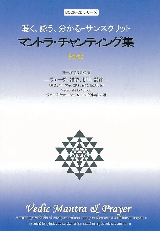 インド古代伝統のヴェーダ・マントラ、サンスクリットの詩節、讃歌、ヨーガのテキスト(Gheranda Samhita)のスートラなどの集大成。ヨーガ・クラスや日々の日課の中で使われるものをセレクトしています。「マントラ集パート1」と併せるとよく詠唱されるものは網羅されています。正しい発音と意味を学ぶのに絶好の作品です。